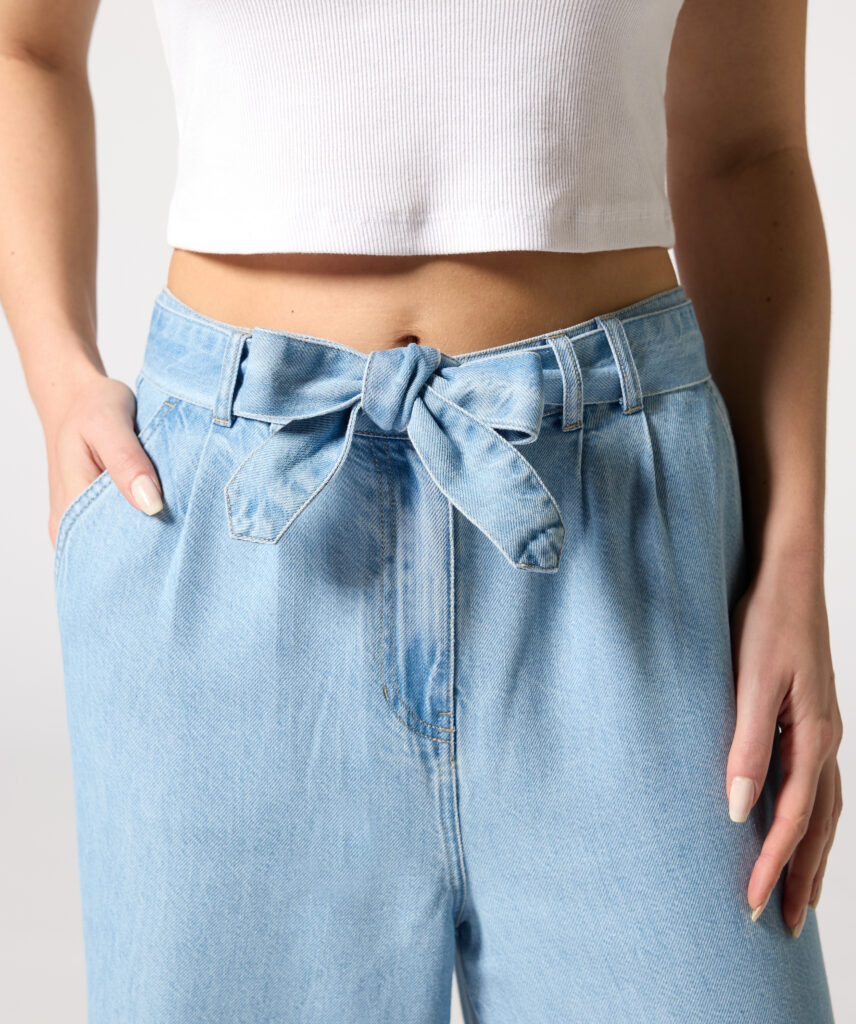 Prosty, przemyślany fason sprawia, że jeansy z szerokimi nogawkami można z łatwością połączyć z innymi elementami, by stworzyć spójną stylizację. W codziennym wydaniu dobrze wyglądają z klasycznym, białym T-shirtem i lekkim obuwiem, natomiast w bardziej eleganckiej wersji – z koszulą lub topem i sneakersami. Jasny, jeansowy odcień dodatkowo wpisuje się w wiosenne trendy, co sprawia, że założysz je na wiele okazji.